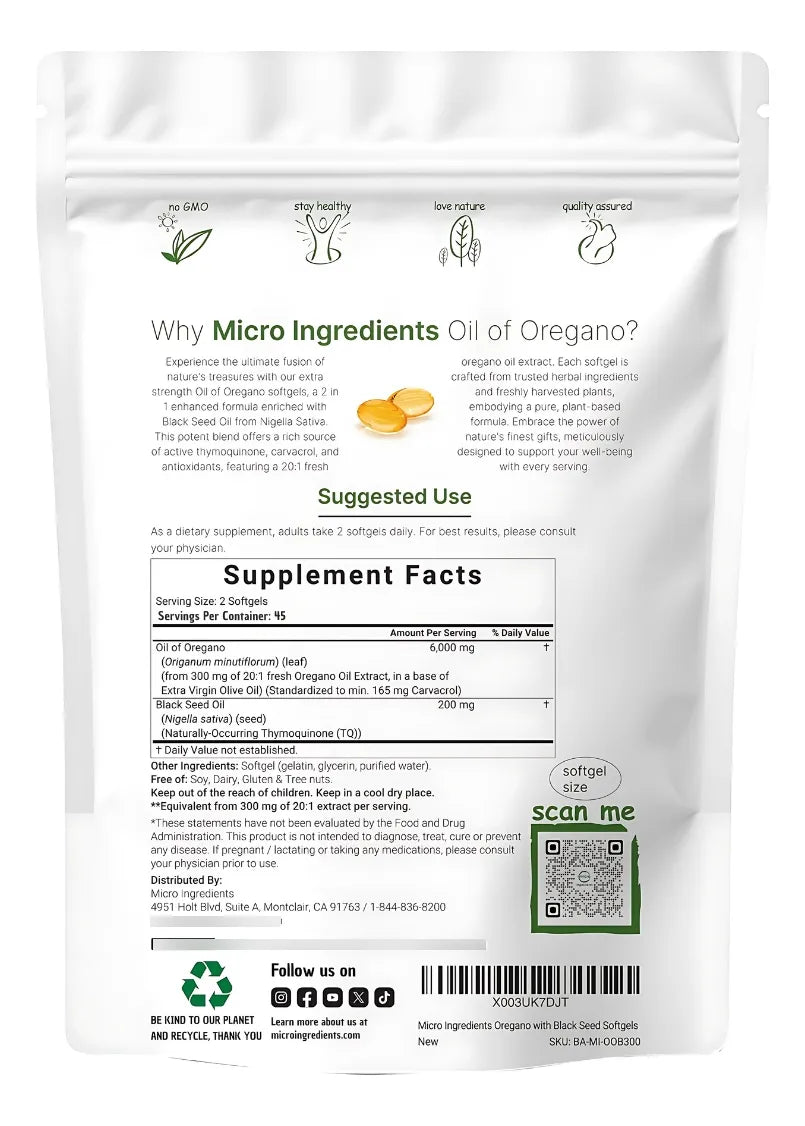 Timoquinona: Es un compuesto químico que se encuentra en el aceite de semilla negra, no en el aceite de orégano. El aceite de semilla negra, a menudo combinado con aceite de orégano en suplementos, puede ofrecer efectos sinérgicos en el apoyo inmunológico y la salud digestiva.